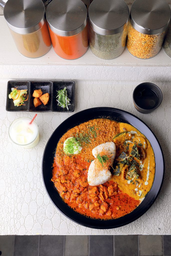 店主・加藤さんが本場インドで触れた「カレーの自由さ、器の大きさ」からヒントを得た、自由な発想で作るカレーが味わえます。カレーはチキン・キーマ・野菜をベースにした3種類を用意。1~2ヵ月ごとに内容が替わり、それに合わせてご飯も替わります。玄米や混ぜご飯など、ひと工夫施されたご飯がスパイスの風味を引き立て、その味わいの妙に思わず唸ってしまいそう!