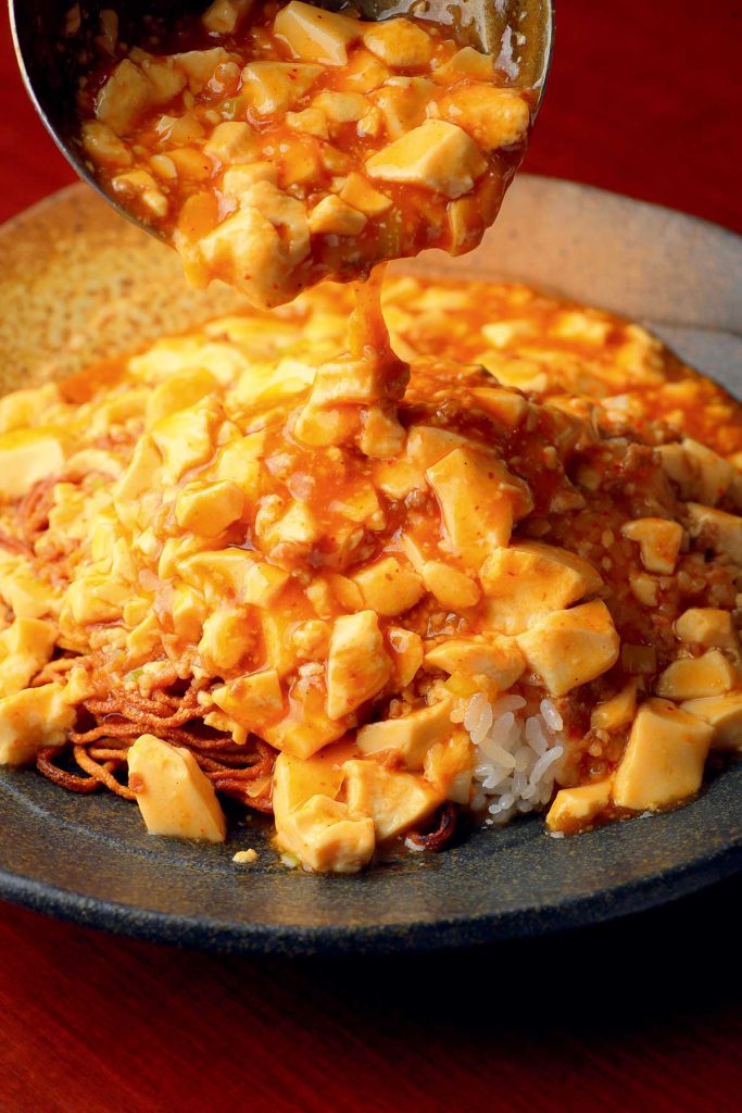 麻婆豆腐の名店がファンの願いを叶える形で生まれた、贅沢なひと皿です。開店当時からある「麺とご飯の両方に麻婆豆腐をかけてほしい」という声に応え、焼き目を付けた中華麺&ホカホカのご飯に、あつあつの麻婆豆腐をたっぷりとオン!爽やかな山椒とコク深いラー油の辛さが相まった、絶品麻婆豆腐を2つの楽しみ方で堪能して。