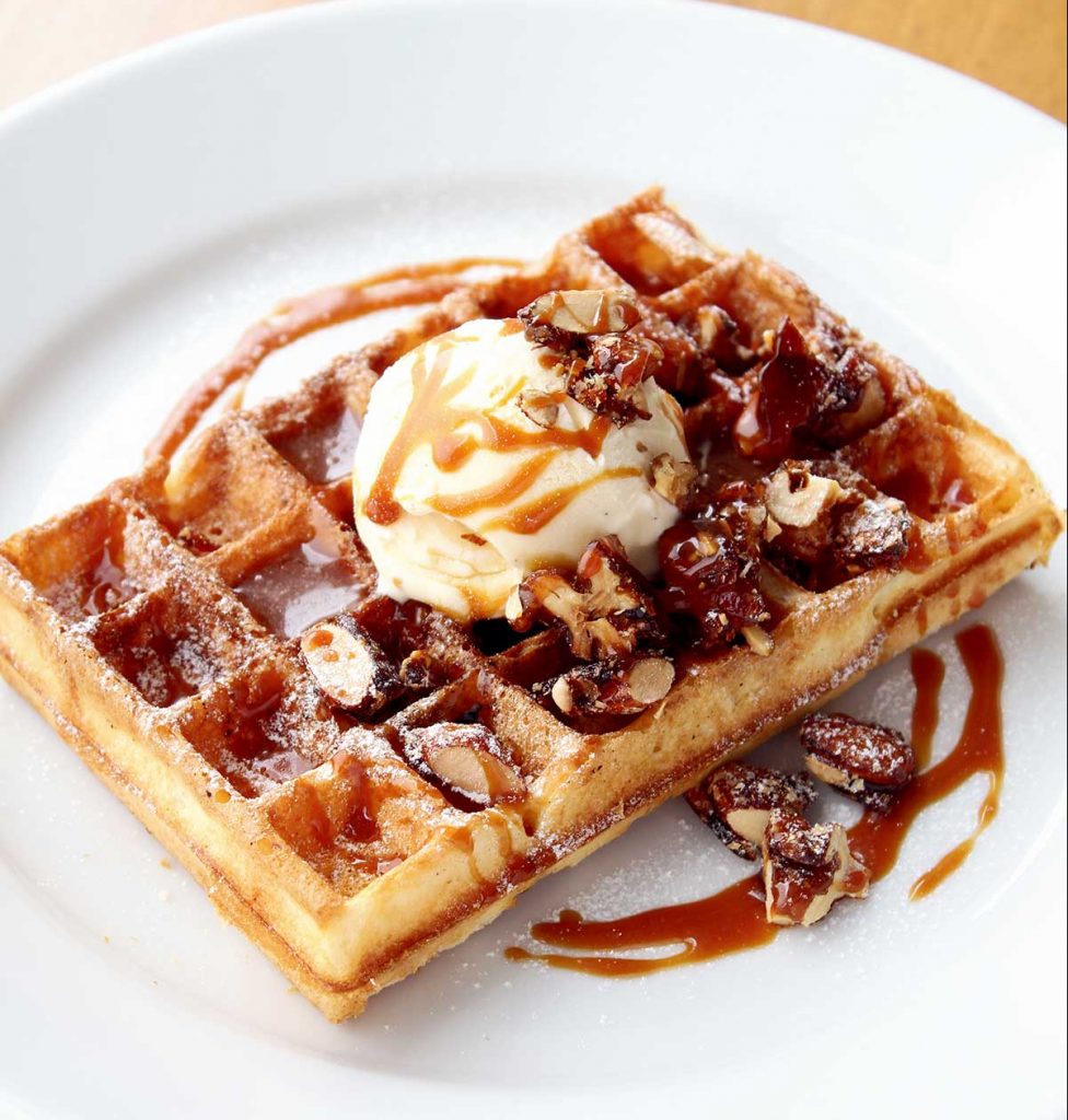 「ブリュッセルワッフル キャラメルナッツ」(600円)は、アイスもキャラメルクリームもすべて手作り!