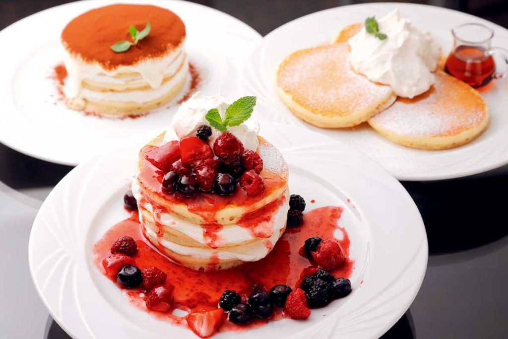 パンケーキは3種類をラインナップ。ベリーやキャラメルナッツなど、どれも華やか