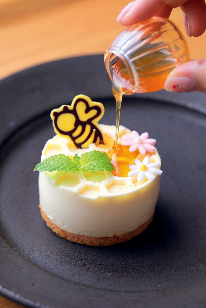 ハチミツとレモンとジュレをとじ込めた「贅沢はちみつチーズケーキ」(690円)。ハチミツをかけて召し上がれ
