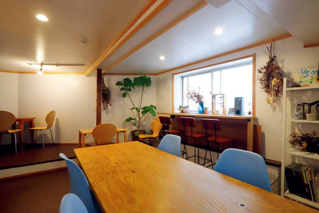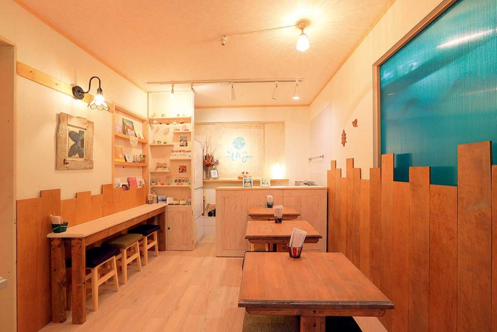 木の温もりがあふれる店内。スタッフ手作りの家具にも注目してみてくださいね