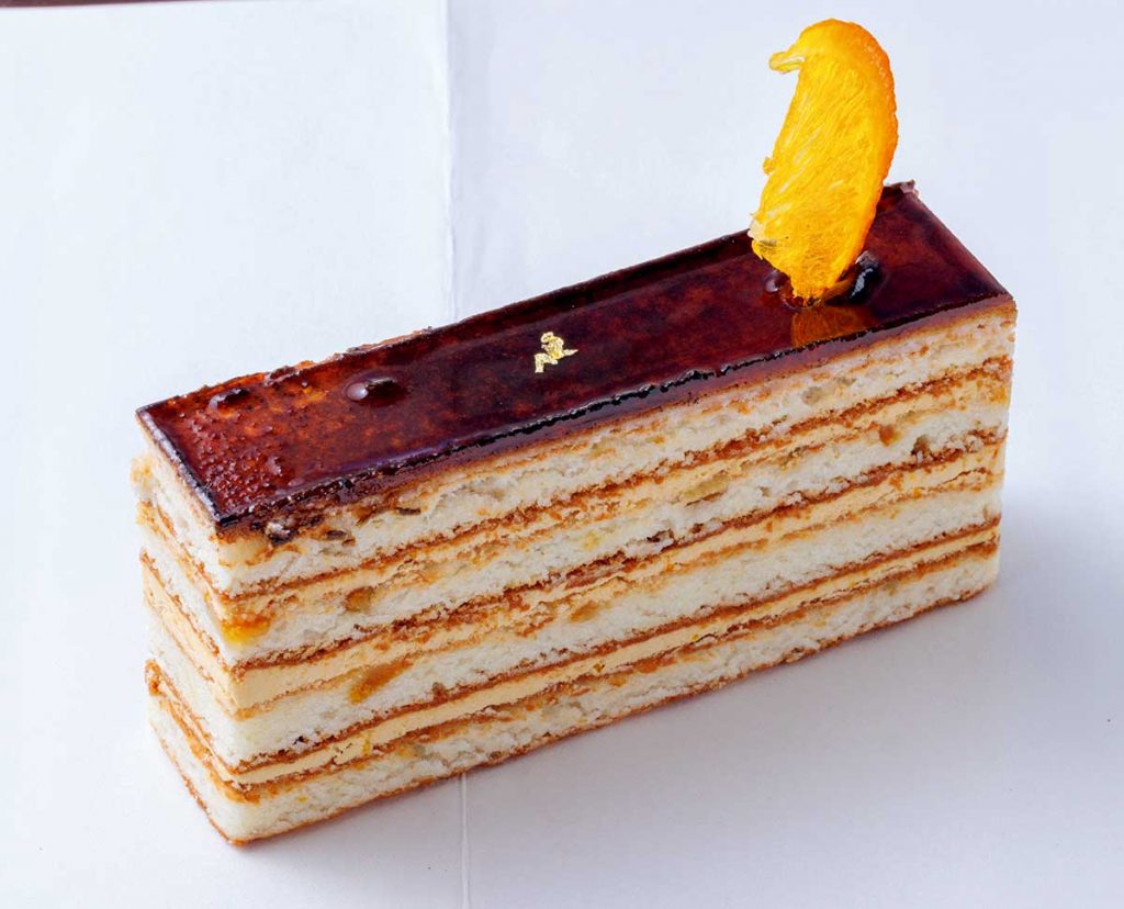 地元住民に愛される『Patisserie Soin(ソワン)」。シンプルながらも繊細な仕立てのケーキが好評です。大切にしているのは、素材の組み合わせや食感、後味の軽さ。それゆえ、最後のひと口までワクワク感が続きます。おすすめは「ランゴ」(464円)。アーモンドが香る生地とオレンジ風味のキャラメルバタークリームで4層に。それぞれの味わいを活かしつつ、まあるく調和のとれた逸品です。季節のフルーツを使ったタルトもおすすめですよ。