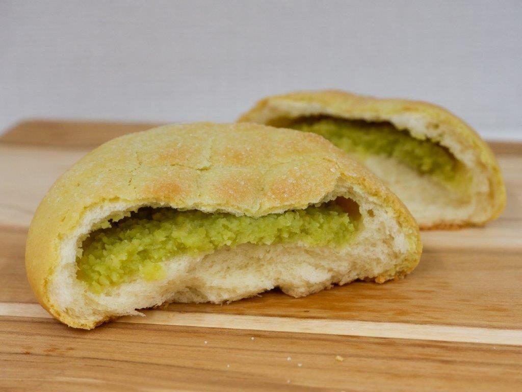 ずんだメロンパン(200円)。つぶつぶ感ある濃厚なずんだとメロンパンは、ホント間違いない