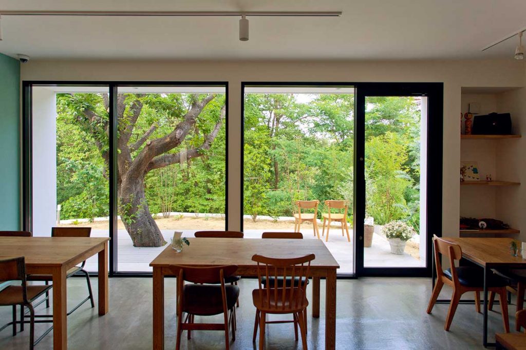 大きな窓から見える一面の緑は、まるで絵画のような美しさ