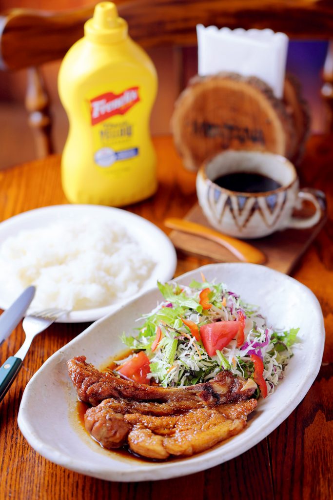 【キャプション】スペアリブ 「スペアリブステーキSET(ミディアムサイズ)」(1,870円)※ライスorパン、コーヒーor紅茶付