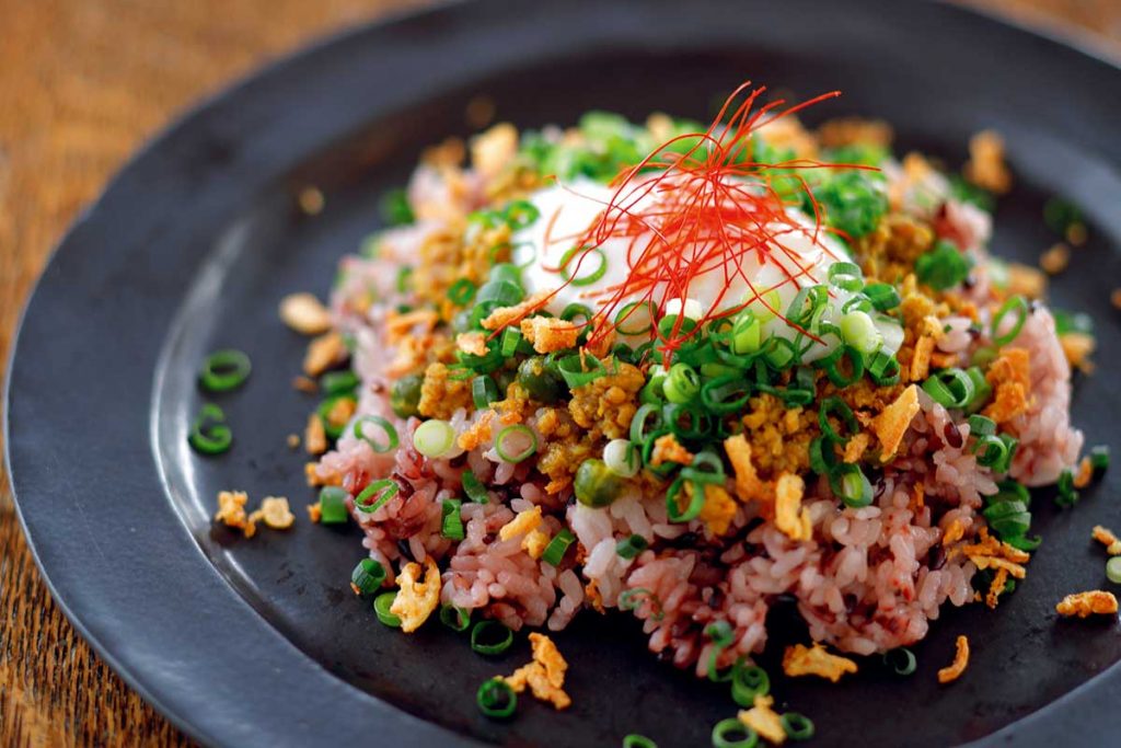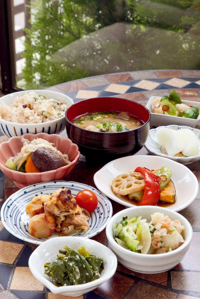 玄米と味噌汁、おかず8品がつくランチ(980円)は、ボリュームもたっぷり!