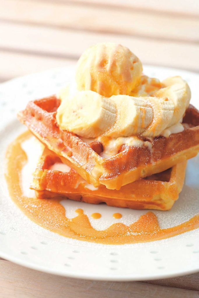 外はサックリ、中はふっくらの焼き加減が絶妙な「バナナキャラメルワッフル」(734円)