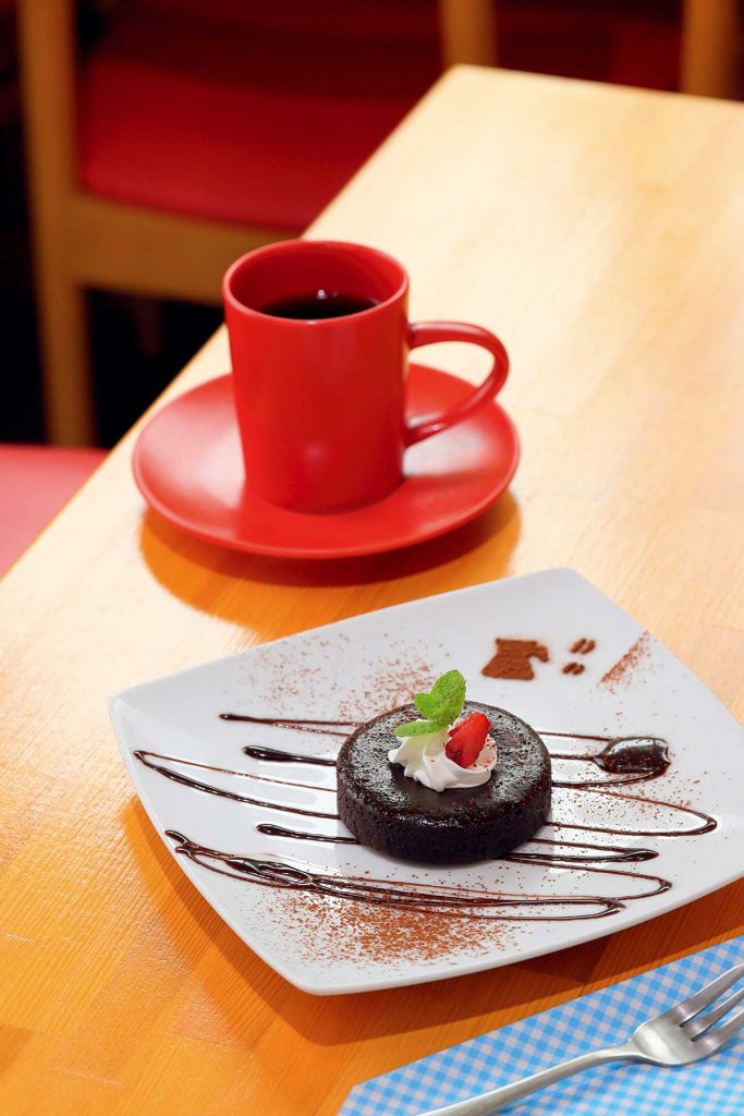 「フォンダンショコラ」(385円)。ケーキとコーヒーを一緒に注文すれば、100円引きで楽しめます