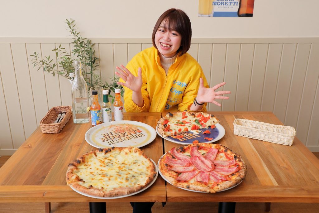まずは400℃に熱した薪窯から「マルゲリータ」が登場。なんと、ピザは1枚直径32cm・重さ1kgと超ビックサイズ!