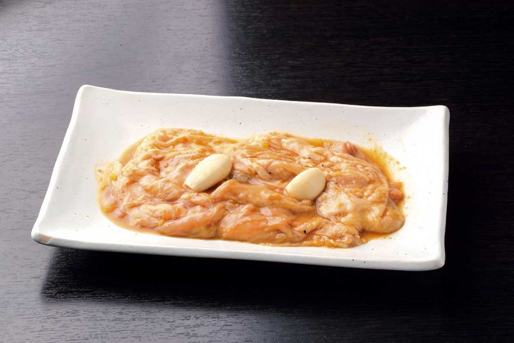 希少な「豚バラ軟骨」(850円)。30分ほど叩いてコチュジャンダレをもみ込んであります