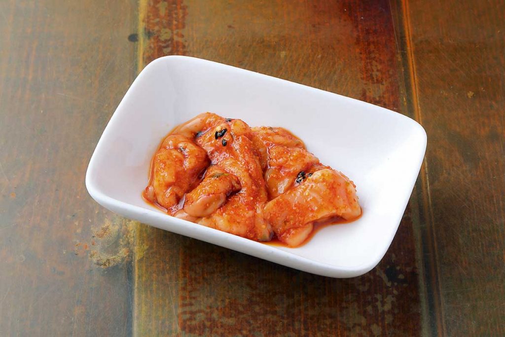 ニンニク、塩コショウ、韓国製ごま油で味付けした「ハチノス」(810円)