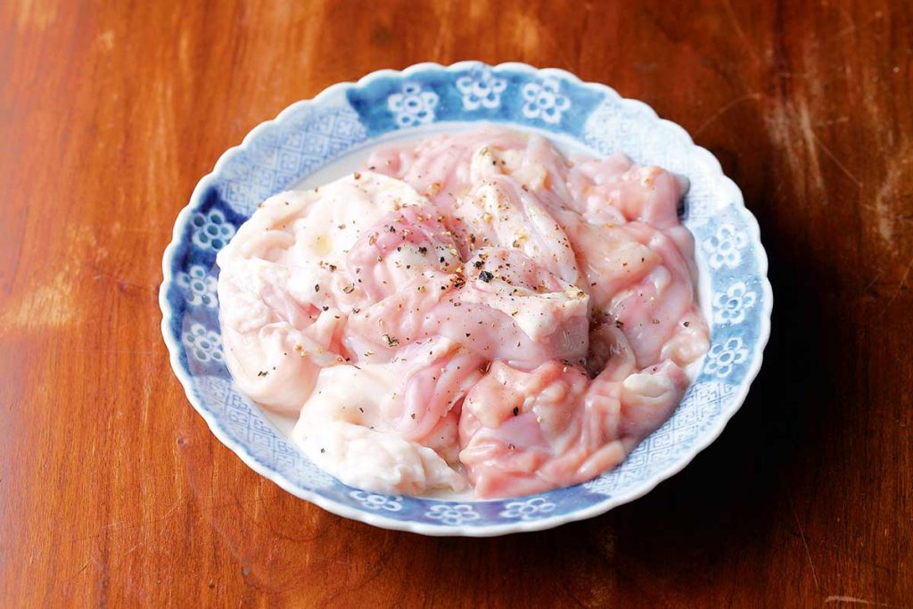 コリコリとした歯ごたえと肉の旨みが共存する、豚ホルモンの王道の部位「シロ」