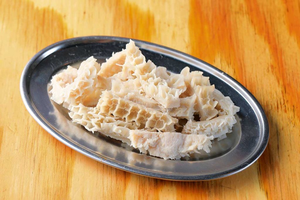 クニュクニュとした歯ごたえが楽しい「ハチノス」(594円)は味噌か塩ダレで