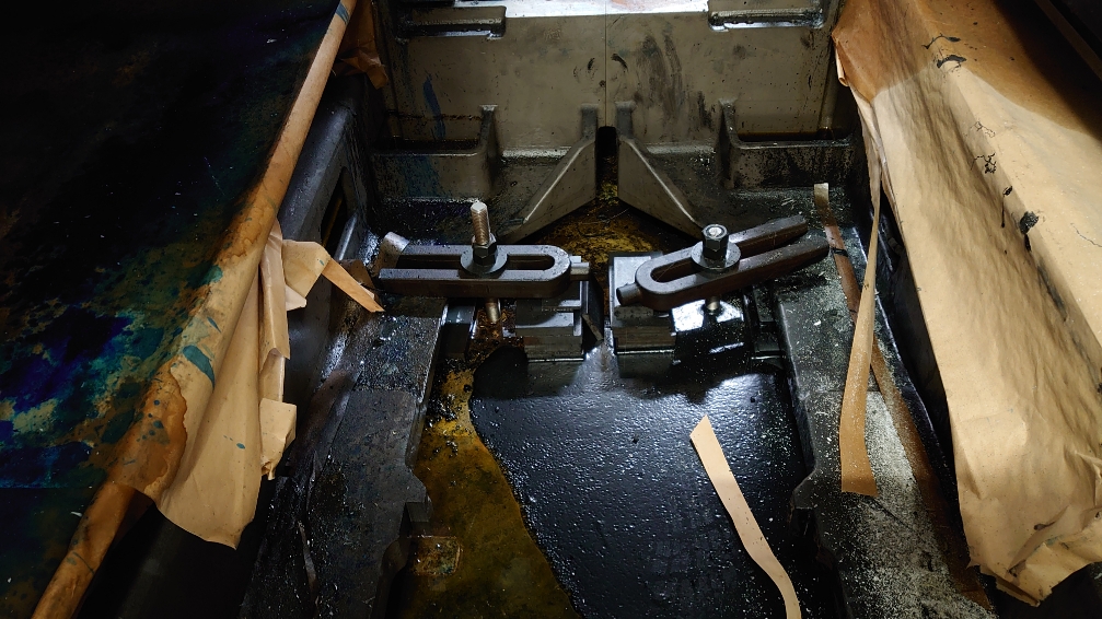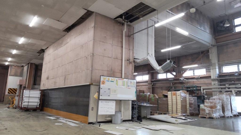 「というのも、印刷機は総重量20tほどもある大型機械。水平垂直に関しては、0.03mmくらいの誤差しか許されない、そのくらいの精度が問われるもの。今回は、機械を止めているアンカーが折れてしまい、機械が動いてしまった。これを直すには、油圧ジャッキを何個も使い、もう一回精度を出す作業が必要になります。これは今も作業員の確保待ちの状況です」(安部さん)。
