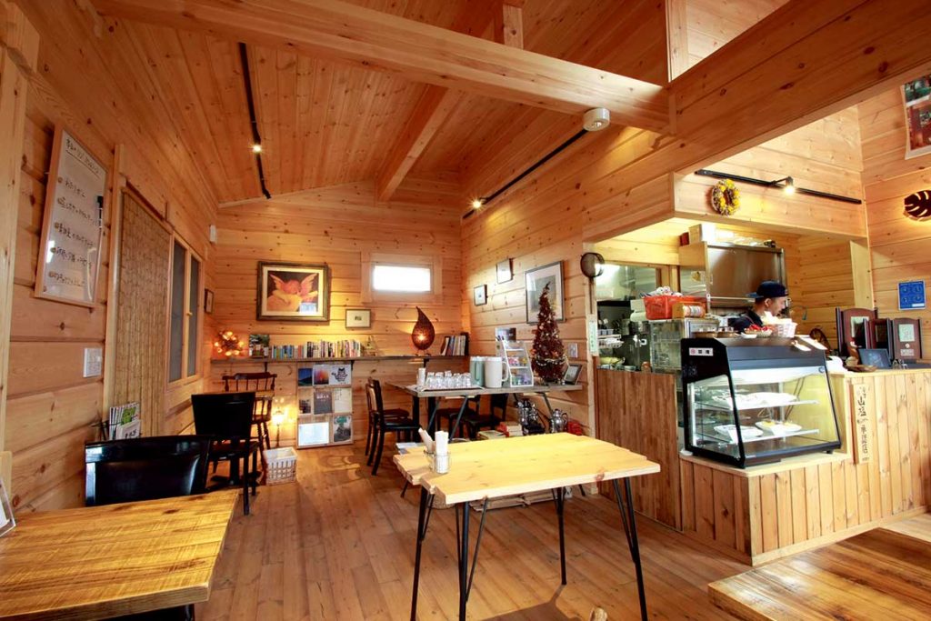 ログハウスのような佇まいの『風と手と土』。ランチの自家製全粒粉パスタと玄米リゾットは、季節のオリジナルソースを好みで選んで楽しめます。この道30年のパティシエによるスイーツ、専用焙煎小屋で丁寧にローストしたコーヒーも自慢です。「風を感じ、土に根差し、手間ひまかけた仕事をしたい」という店主の想いが詰まった品々を、じっくりと味わってください。