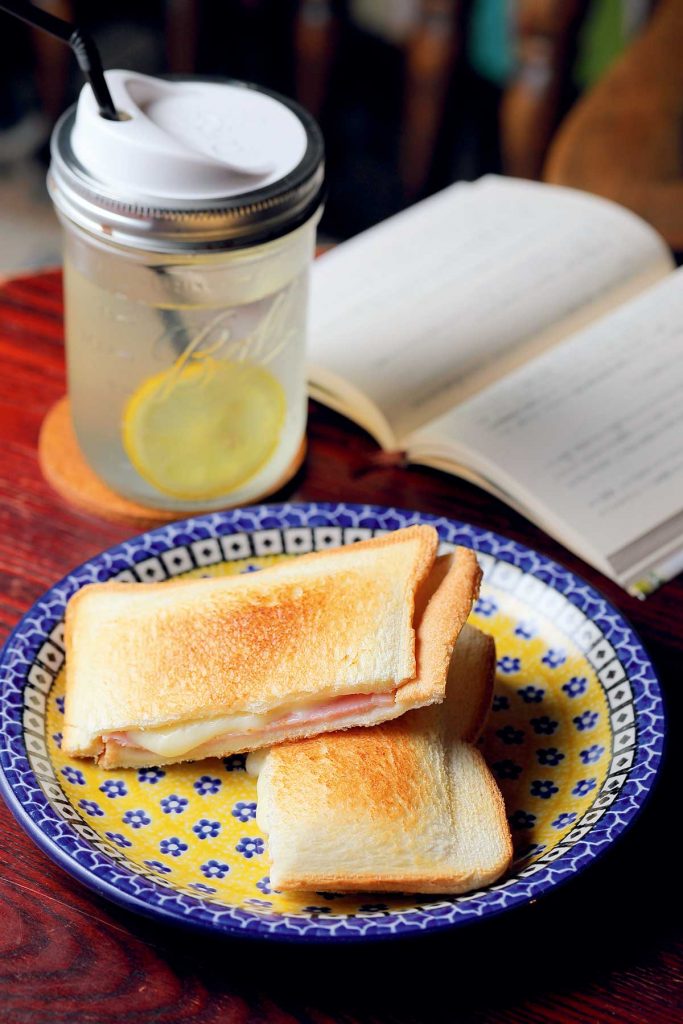 北海道産モッツァレラチーズを使用した「ホットサンドハムチーズ」(510円)。「アイスレモネード」(560円)はセットにすると100円引きで楽しめます