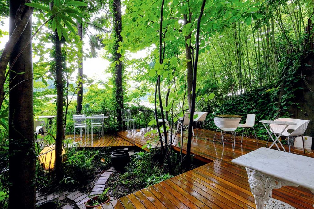 ウッドデッキを広くし、より開放的になったテラス席。席によって違った趣が楽しめますよ