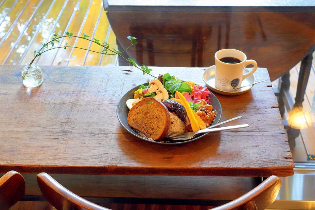 2人のオーナーが子育て系のNPO団体で知り合ったこともあり、「お子様連れ歓迎」のお店です。フードは仲卸市場で毎朝仕入れる野菜を中心に用意。ドリンクは日本茶やオリジナルブレンドコーヒーのほか、デカフェもあるのでカフェインが苦手な人も安心です。併設のミニショップでは、リネンやコットン製のワンピース、作家物の陶器、ベビーグッズが購入できます。