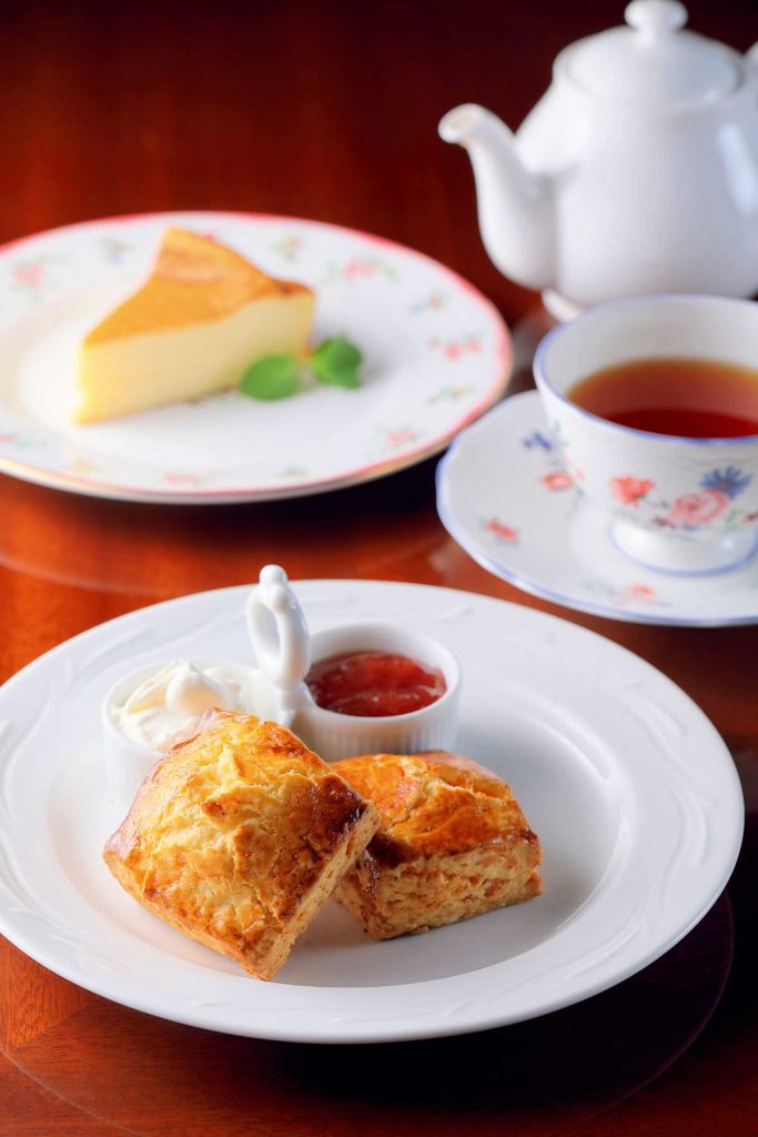 「スコーン」(単品495円・セット440円)。クリームとジャムをそれぞれ2種類から選ぶことができます
