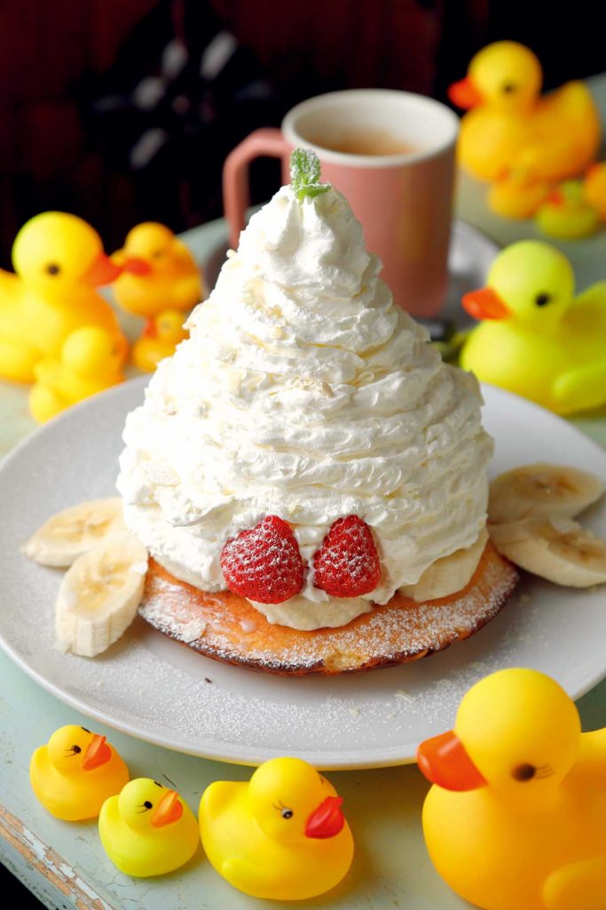 パンケーキ「いちご&バナナ マウンテンクリーム」(1,210円)と、「自家製ブレンド」(550円)