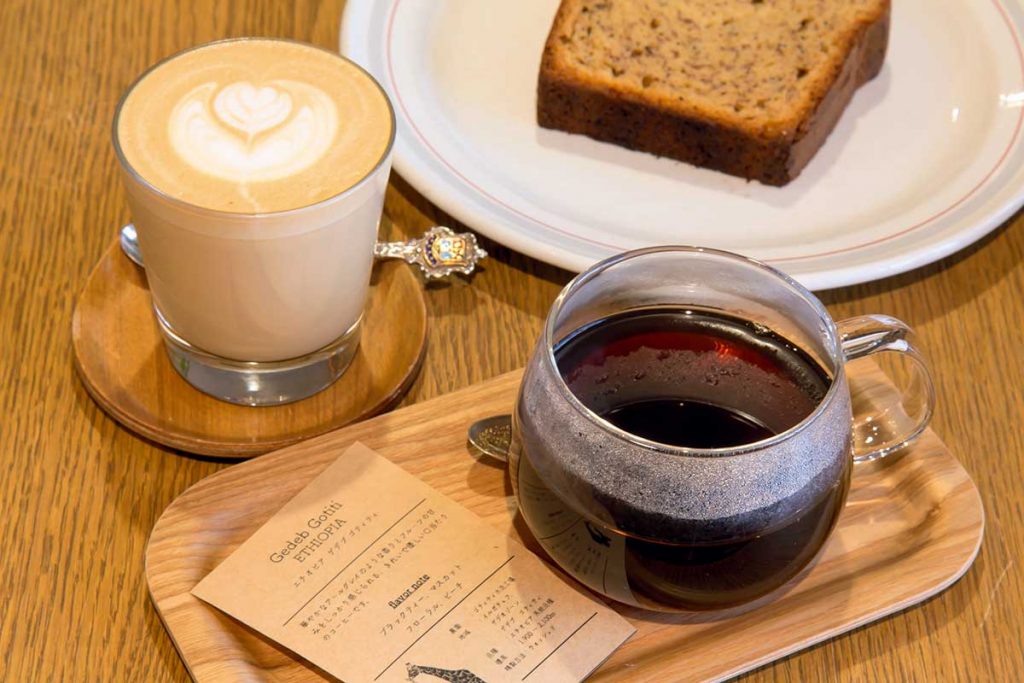 「ハンドドリップコーヒー」(手前・550円)と「ラテ」(450円)