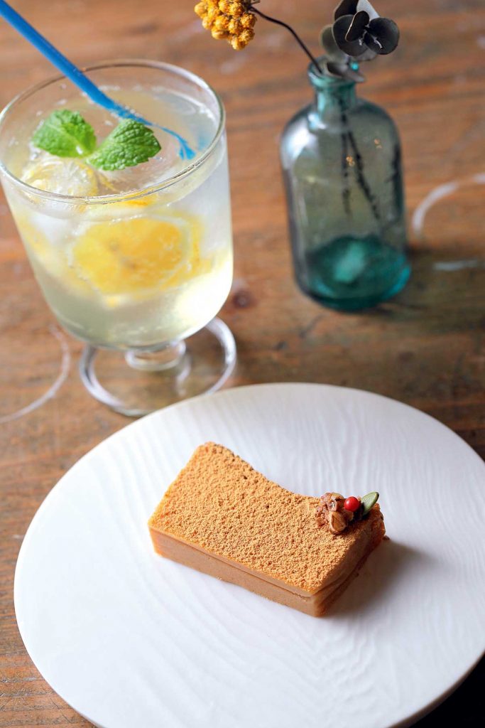 「仙台きなこのテリーヌショコラ」と「はちみつレモンスカッシュ」。ケーキセットは864円から