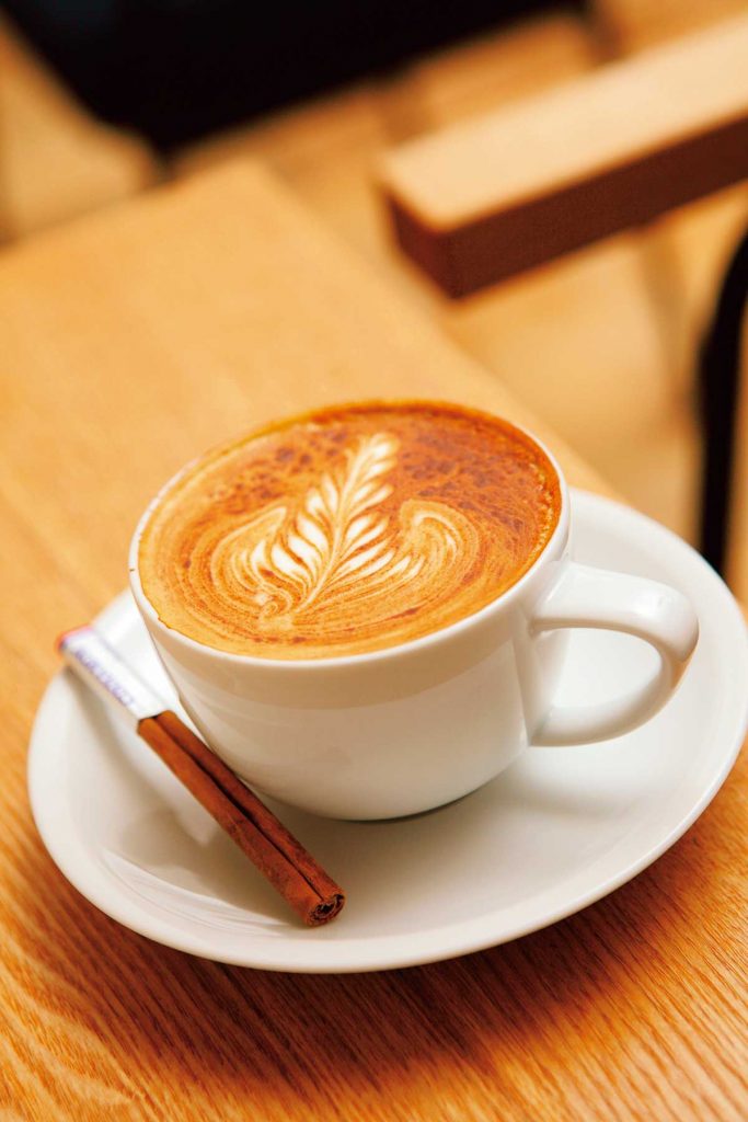 「シナモンカプチーノ」(600円)。繊細なラテアートにうっとり