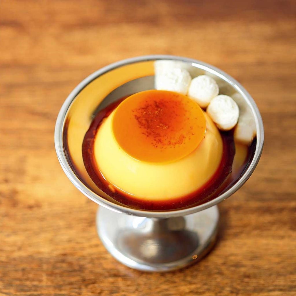昔ながらの喫茶店を彷彿とさせるレトロな佇まいの「カスタードプリン」(350円)