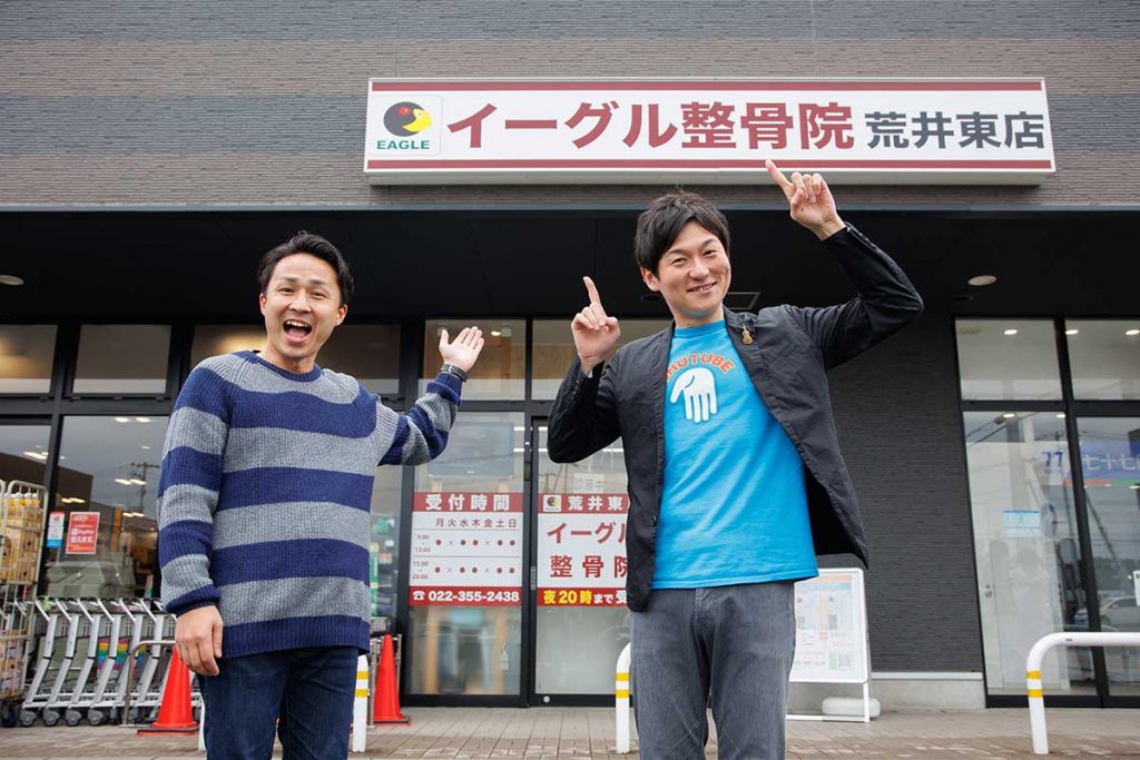 最近はゴルフに大ハマりの半澤と、近所を1周が最大の運動という秀作が今回訪れたのは、健康が気になる人の身近な駆け込み寺として人気の『イーグル整骨院 荒井東店』。