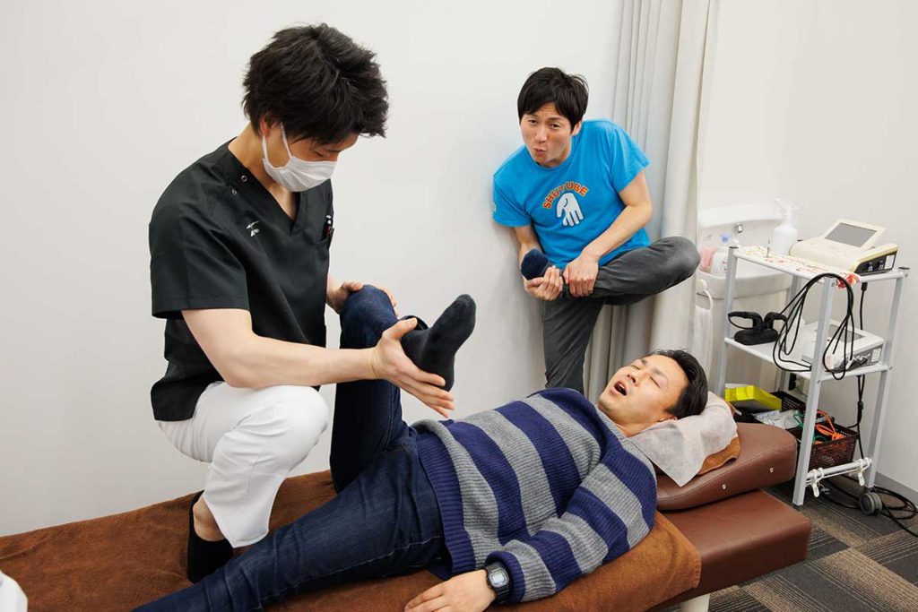 続いて半澤が受けるのは骨盤矯正。仰向けでストレッチを受けながら恍惚の表情を浮かべる半澤が一言、「ゲキ整いです」。