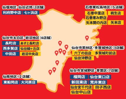 スイーツ, 青葉区, 宮城野区, 若林区, 太白区, 泉区, 利府町, 多賀城市, 塩竈市, 富谷市, 名取市