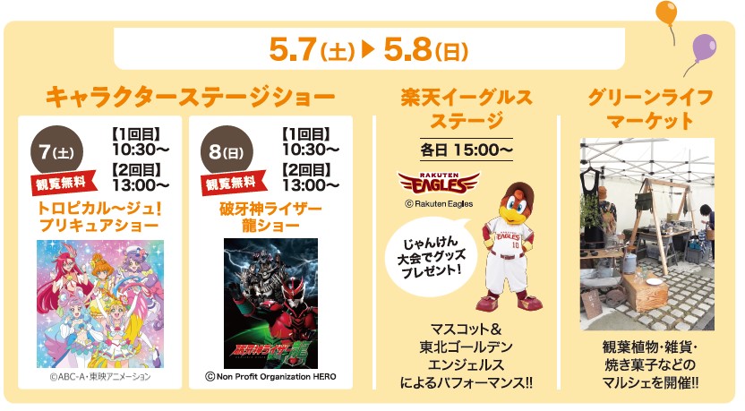 5月7日(土)~8日(日)はキャラクターステージショーを開催!