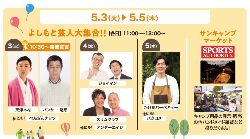 5月3日(火・祝)~5日(木・祝)は、よしもと芸人が大集合!