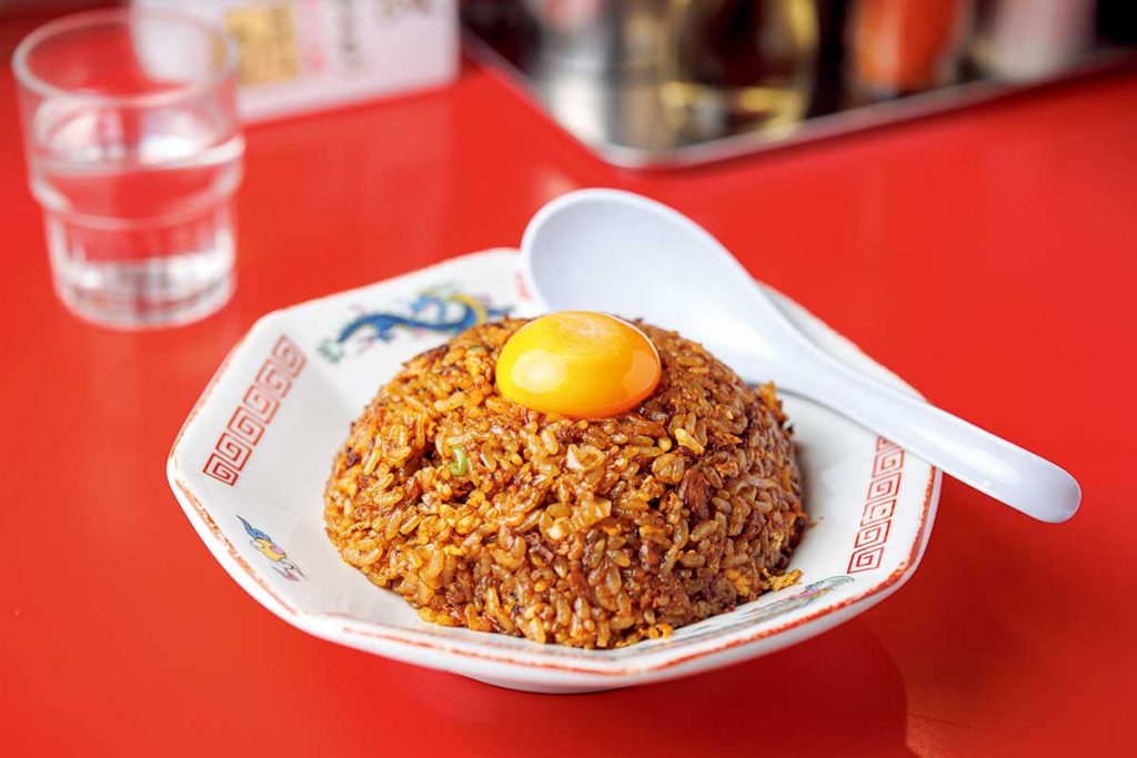 京都の老舗『新福菜館本店』の暖簾分けとして、秋田で創業した『末廣ラーメン本舗』。たまり醤油をかえしに使ったスープが特徴の「中華そば」と人気を二分するのが、同じかえしで味付けした「ヤキメシ」です。真っ黒なご飯をひと口食べると押し寄せる濃厚な醤油味に、もう食欲はノンストップ。ツウは黄身でマイルドに味変したヤキメシを頬張り、中華そばの濃厚スープをひと口。“末廣ファン”なら必ず頼みたいひと皿がコレ!