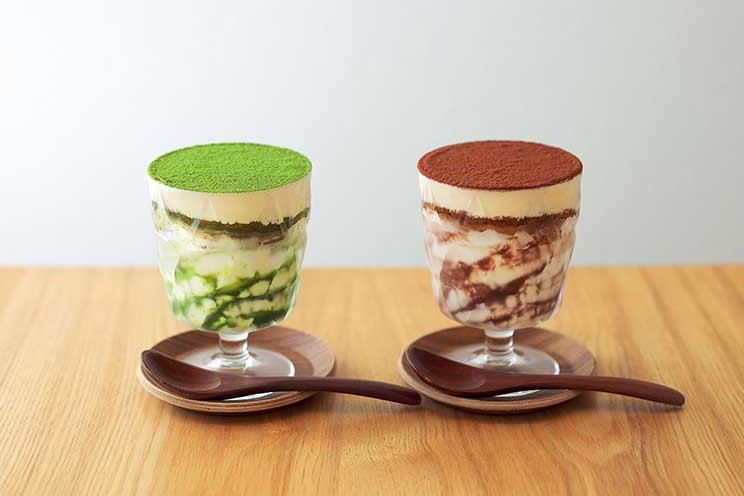 宇治抹茶を使用した「抹茶ティラミスどら焼きソフト」と、ビターな味わいの「ティラミスどら焼きソフト」(各880円※テイクアウトの場合は各864円)