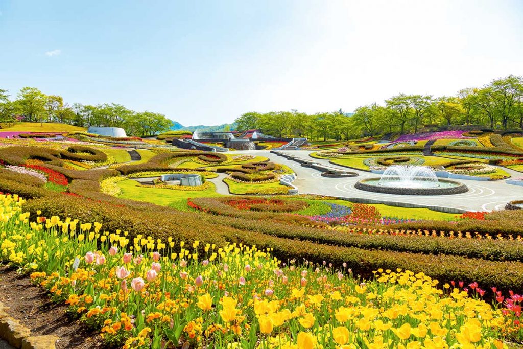 2.蔵王連峰をバックにさまざまな花が咲き誇る『川崎町 国営みちのく杜の湖畔公園』