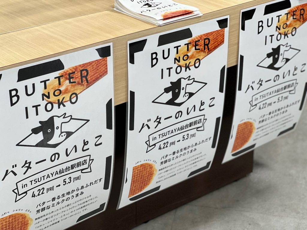 ちなみに現在『TSUTAYA仙台駅前店』さんでは、韓国で知らない人はいない、圧倒的な人気を誇るヘルス&ビューティーストア「OLIVE YOUNG」の商品を扱うPOPUPと、栃木の銘菓「バターのいとこ」の販売会も同時開催中。