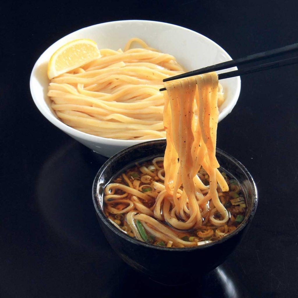 トッピングのレモンをかけるとガラリと表情を変える味わいが楽しめる「つけ麺」(800円)※写真は麺300g。レモントッピング+20円