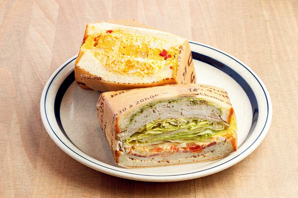 ボリューム抜群の「HUMMINGクラブハウスサンドイッチ」(464円)、「厚切りタマゴのサンドイッチ」(410円)もおすすめです