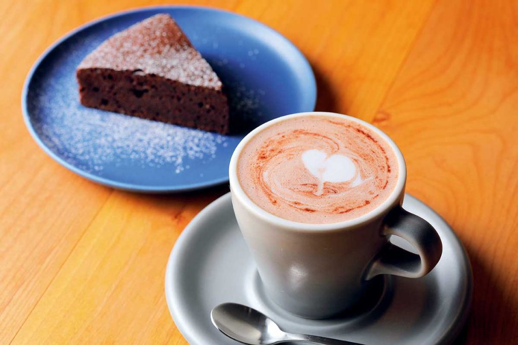 『Dandelion Chocolate』のチョコを使った「ホットチョコレート」(580円)と、「ガトーショコラ」(450円)