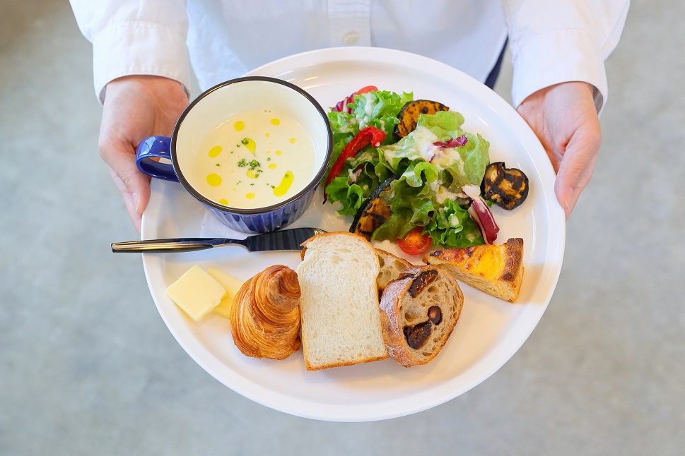 「パンとスープのセット」(715円※モーニング限定)。“豊かな朝食がいい一日を作る”というオーナー・吉武さんの想いが詰まったひと皿