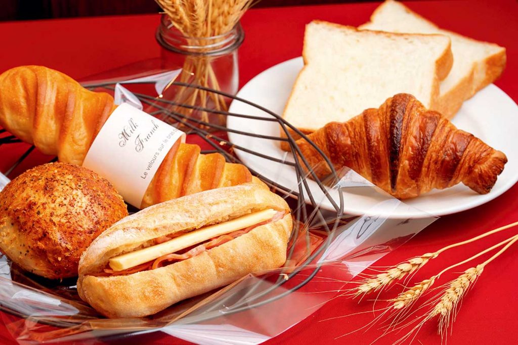ハード系から食事パン、惣菜系、菓子パンなどバラエティに富んだラインナップ。不動の人気を誇る「食パン」も要チェック