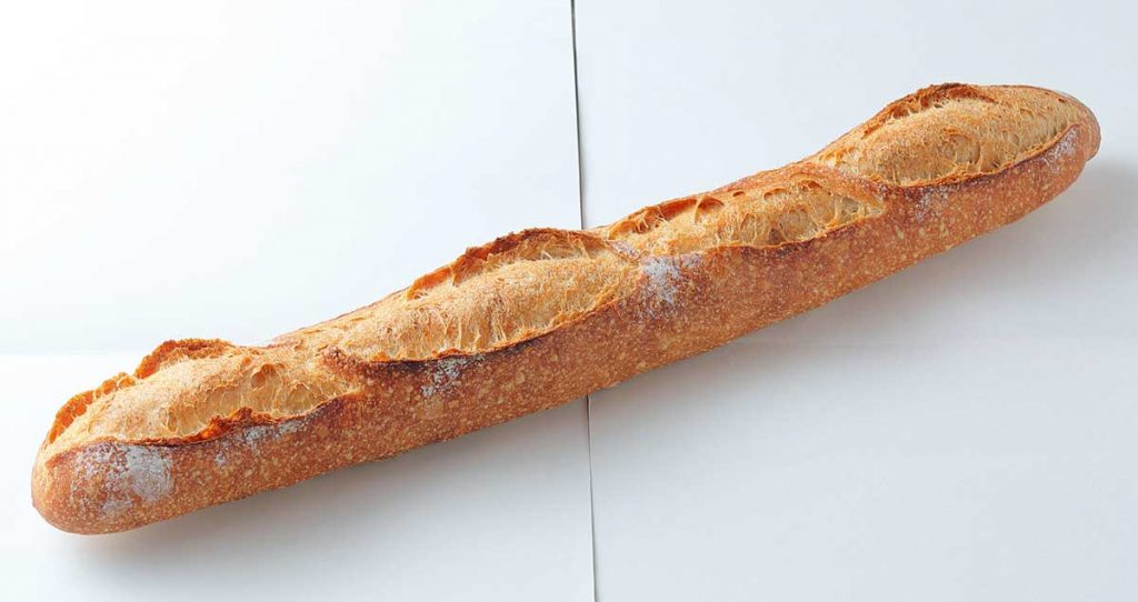 歯切れの良さが自慢の「宮城県産小麦のバゲット」(280円)。試行錯誤を繰り返し、宮城県産小麦を使った理想のバゲットが完成!