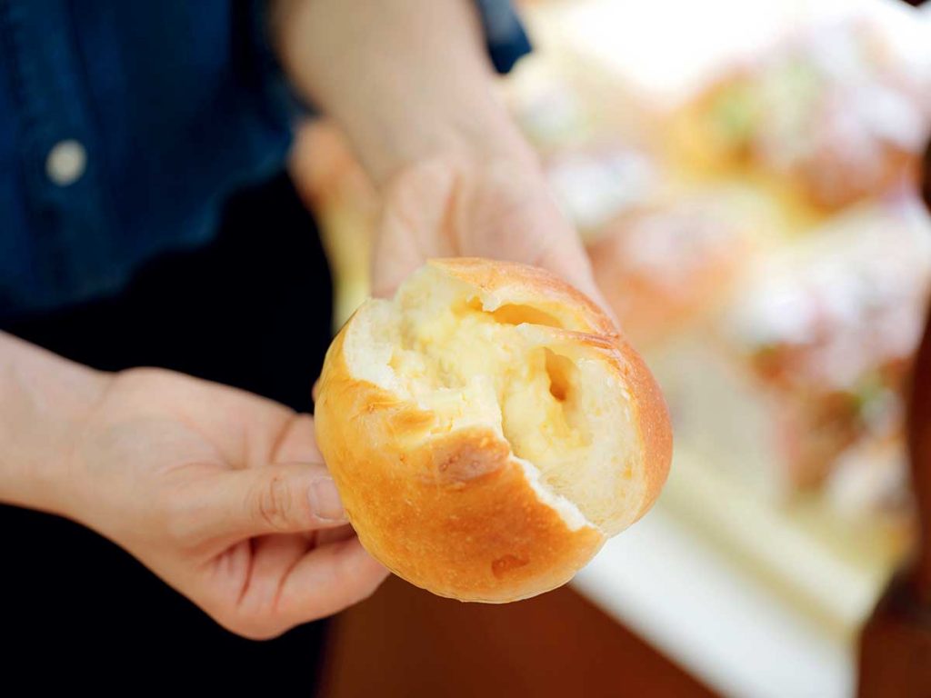 6代目・岡さんの自信作「チーズクリームパン」(150円)。ふかふか生地の中にはチーズクリームがたっぷり