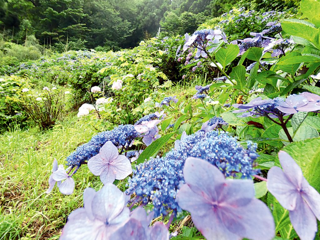 斗蔵山(標高250m)は、ウラジロガシの北限として林木遺伝資源保存林に指定されている。ほかにモミの木、カシの木など国内有数の貴重な群生林でもあり、6月中旬から7月中旬にかけて見頃を迎える紫陽花も名物だ