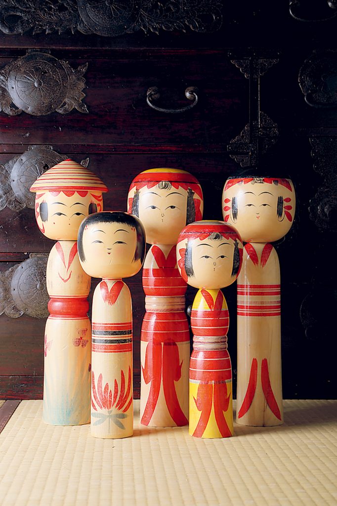 伝統こけしの王国・宮城。白石に伝わる弥治郎こけしは、太いロクロ線を組み合わせた模様の他、花をあしらったものなどがある。『白石市弥治郎こけし村』では、絵付け体験や工房見学でその伝統に触れることができる