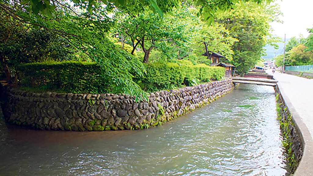 清流中に生育し、初夏から初秋にかけて、水中に梅の花のような白い花を咲かせる「梅花藻(ばいかも)」。武家屋敷の前を流れる沢端川で、6月ごろから見られる。まちのシンボル白石城と一緒にチェックしたい