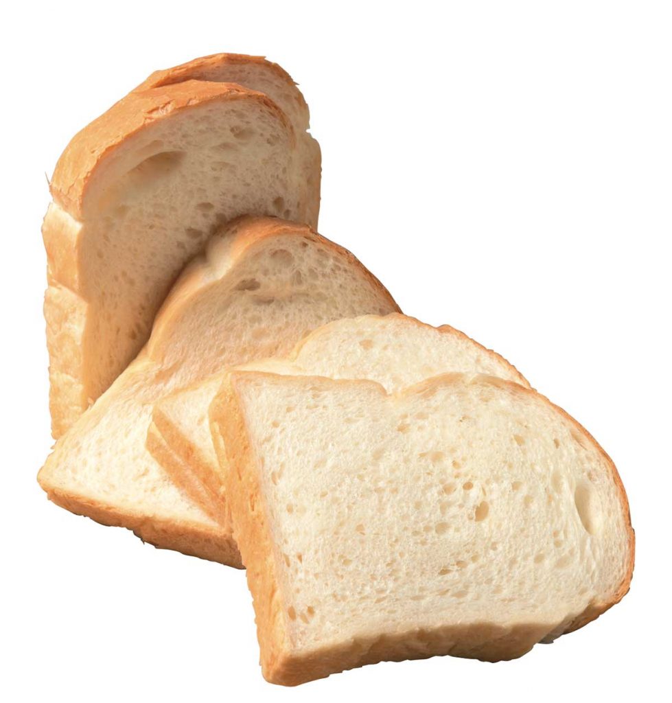 店一番人気のふわふわ食パン。ひと口頬張れば、生クリームの香りが口いっぱいに広がる「はやさか製パンの山食パン」(332円)
