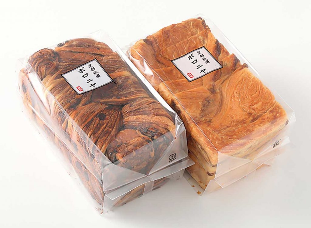 京都・祇園で行列のできるパン屋としてスタートした『ボロニヤ』。デニッシュ食パンの専門店です。厳重な温度管理のもと、パン生地とオリジナル油脂を幾重にも織り重ね三つ編みにし、折っては寝かせる工程を6時間もくり返して作っています。そうした技術と手間暇をかけることで、ふんわりとほどける歯触りを実現。トースターで温めれば、焼きたての状態に近い贅沢食感が楽しめますよ。